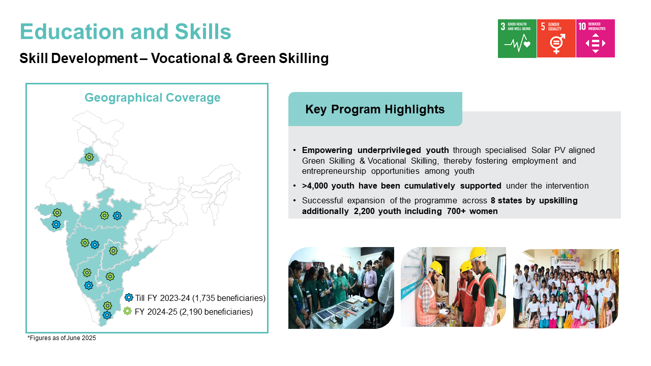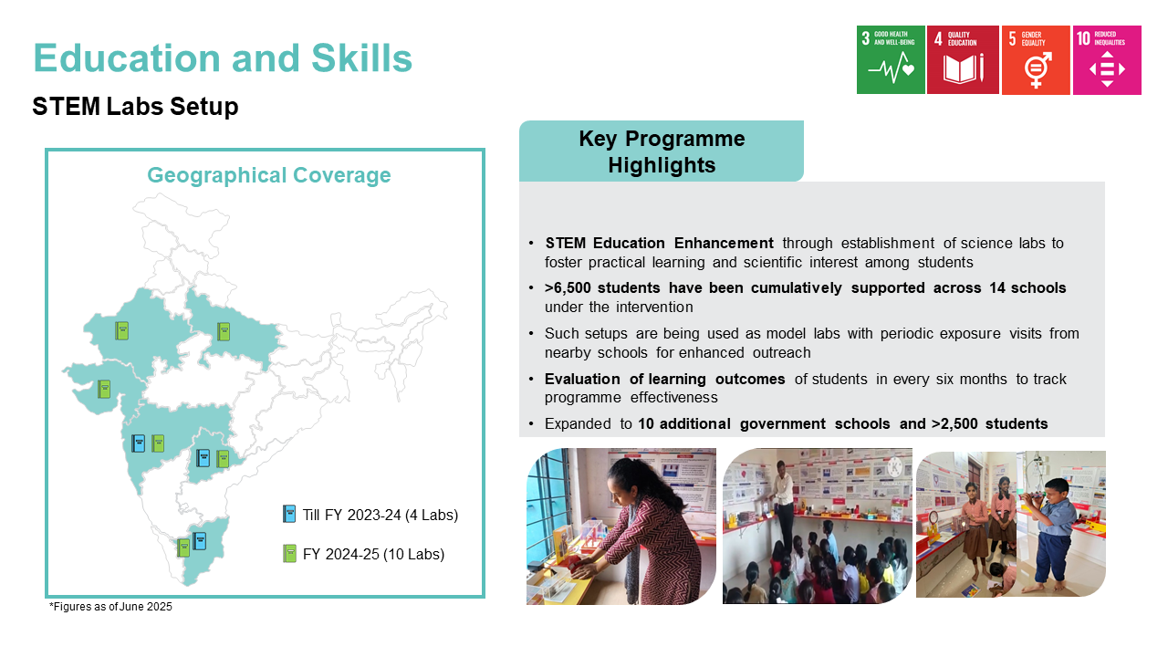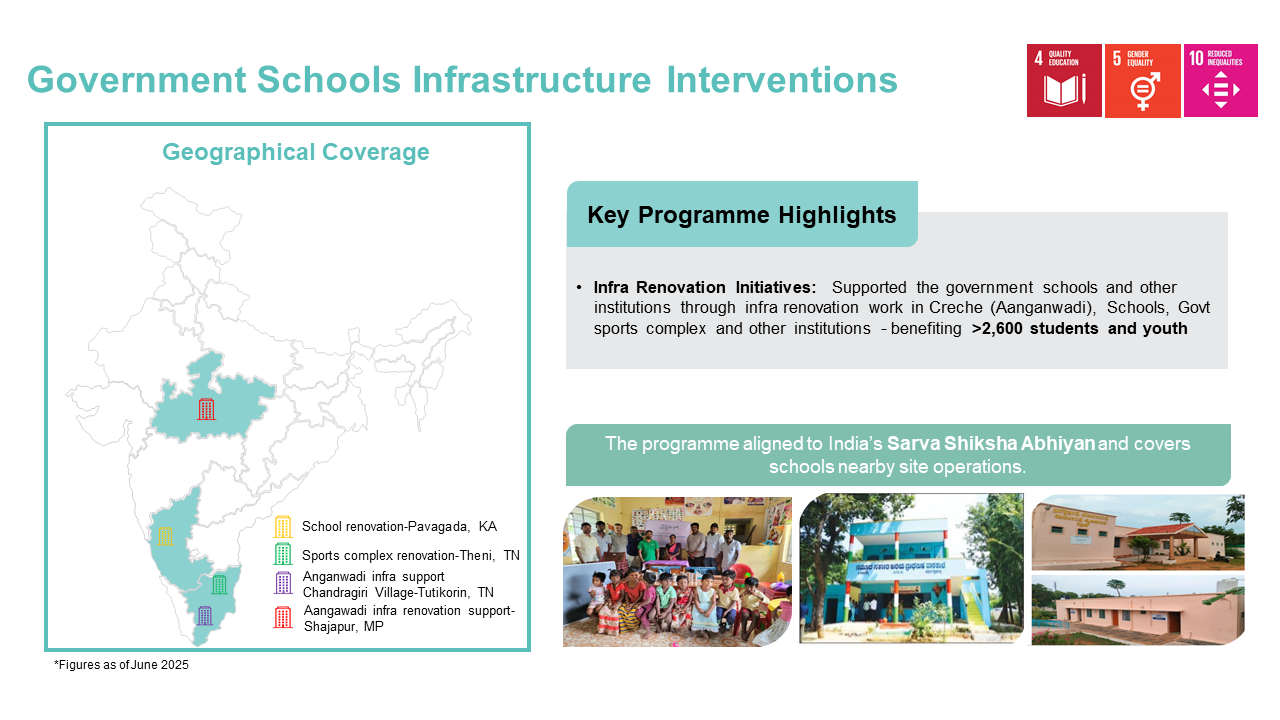 Our initiatives include improving the quality of government schools near our areas of operation by enhancing educational amenities, introducing digital learning tools, and installing rooftop solar solutions to promote clean energy.